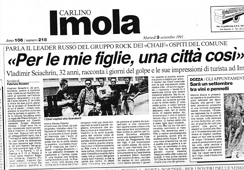 В Италии, на гастролях, вносивших вклад в дело урало-итальянской дружбы, корреспондент местной газеты Фабрицио Россини беседовал с Владимиром Шахриным в общежитии аграрной школы «Скарабелли», где проживала группа: